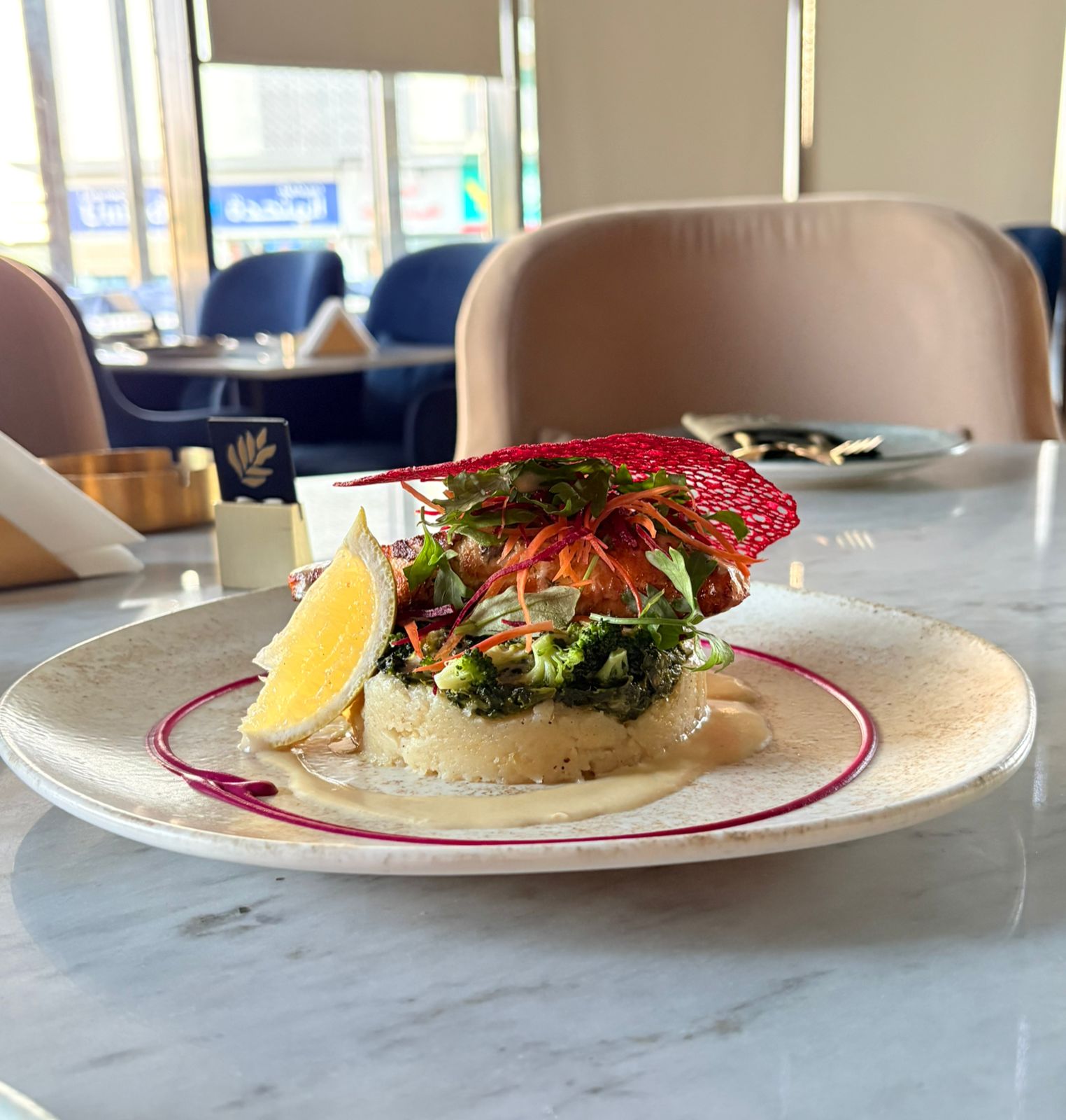ﺳﻠﻤﻮن ﻣﺸﻮي ﻣﻊ ﺻﻮص اﻟﻠﻴﻤﻮن واﻟﺰﺑﺪه
