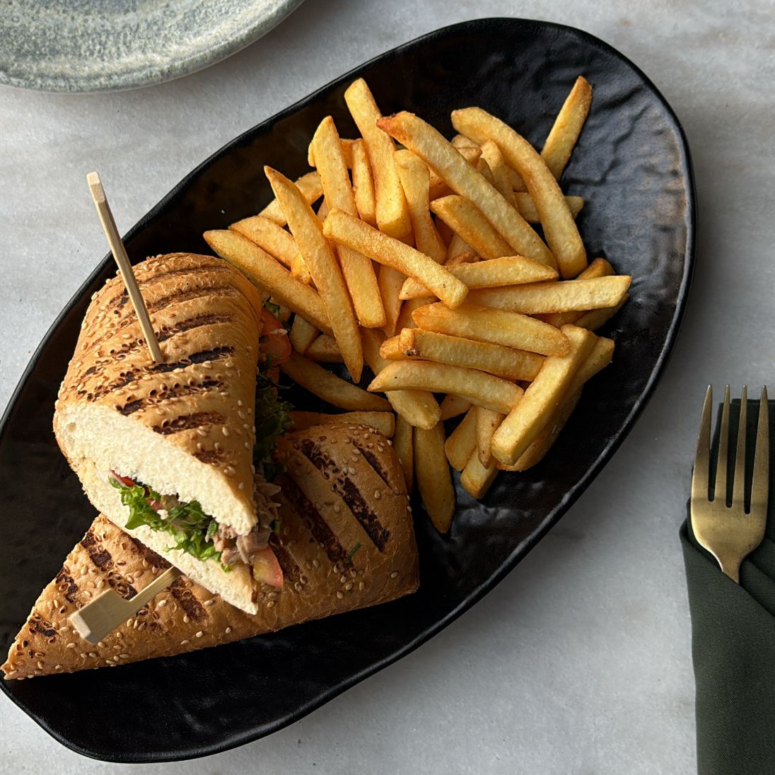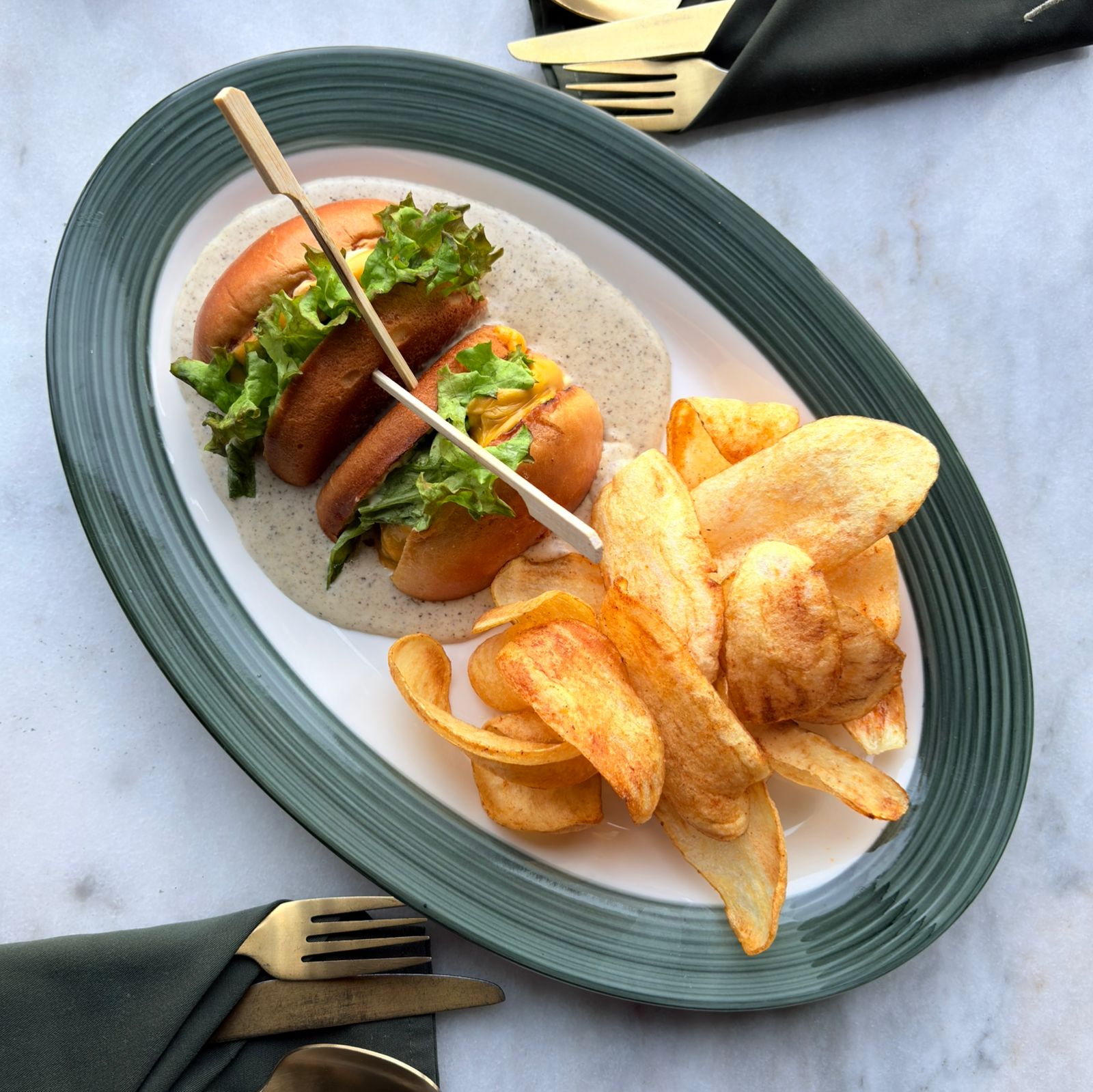 ﺻﺪر دﺟﺎج ﻣﺸﻮي و ﻣﺘﺒﻞ ﻳﻘﺪم ﻣﻊ ﺑﻄﺎﻃﺲ ﺑﻮرﻳﻪ و اﻟﺨﻀﺎر اﻟﻤﺸﻮي