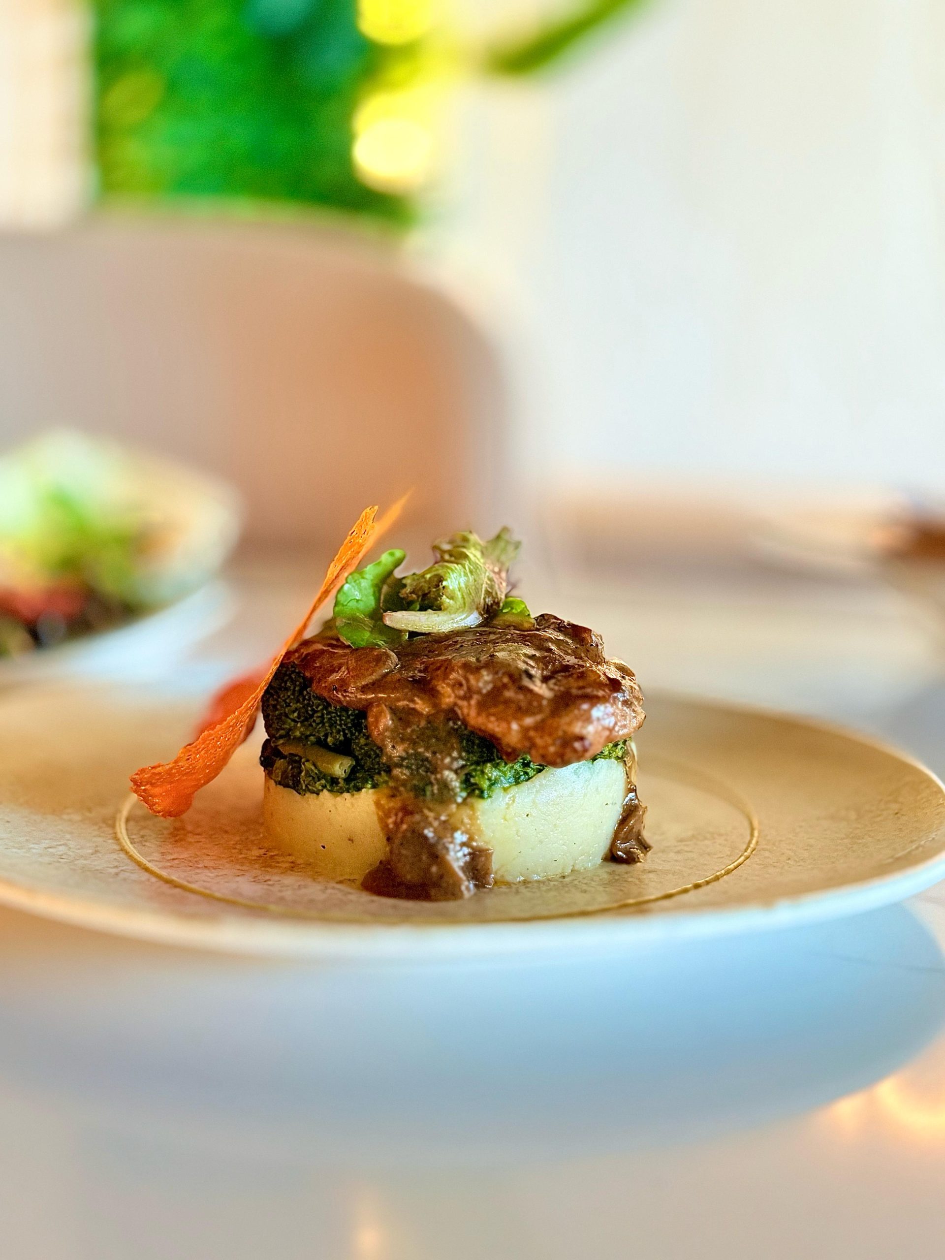 ﻗﻄﻌﺔ ﻣﻦ اﻟﻠﺤﻢ اﻟﻄﺎزج اﻟﻤﺸﻮي اﻟﻤﺘﺒﻞ ﺑﻌﻨﺎﻳﺔ